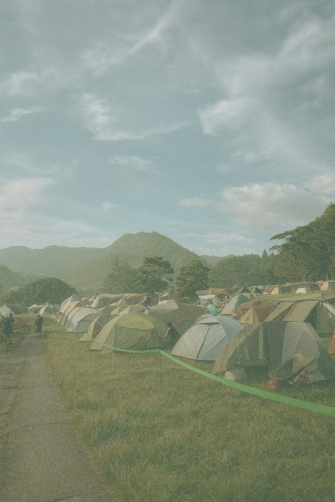 苗場の山間に囲まれた自然の中でキャンプをしながら音楽を浴びる──